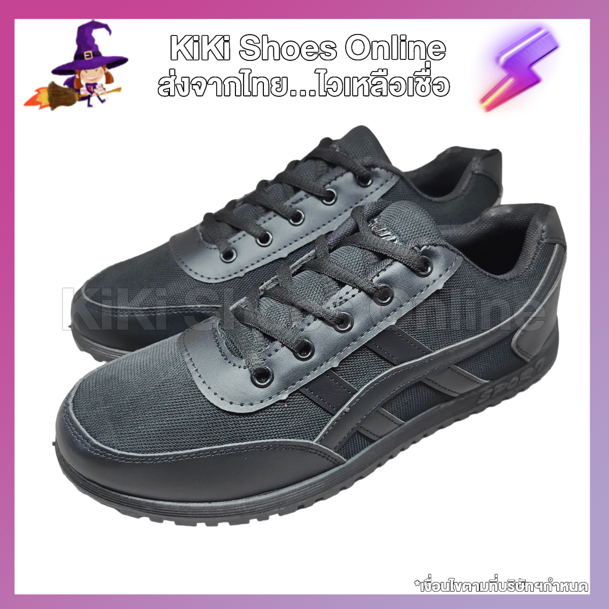 **** Note **** รองเท้ารุ่นนี้เล็กกว่าปกติเล็กน้อยนะคะ แนะนำว่าควร +1 ไซส์จากปกติค่ะKiKi Shoes - รองเท้าผ้าใบดำล้วน ผ้าใบผู้ชาย สไตล์แบรนด์ ลาย 3 ขีดข้าง เท่ โดดเด่น พร้อมลุย รองเท้าแฟชั่น ในทุกโอกาสและจังหวะของชีวิต เรื่องแฟชั่นคุณผู้ชายก็ต้องไม่น้อยหน้าคุณผู้หญิงนะคะ วันนี้เราจึงขอนำเสนอรองเท้าผ้าใบดำล้วนที่จะเปลี่ยนแฟชั่นของคุณผู้ชายให้พร้อมสำหรับทุกโอกาส ดูเข้ากันได้กับทุกสถานการณ์ ฟังก์ชั่นครบ ราคาสุดคุ้ม เหมาะสำหรับคุณผู้ชายทุกคนมากๆค่ะ เราเข้าใจในสถานที่ทำงานของคุณผู้ชายมักมีกฎให้ใส่รองเท้าสีดำล้วน แต่คุณผู้ชายอยากจะใส่รองเท้าแฟชั่นไปทำงานไปอวดความเท่ในตัวเองเช่นกัน ในที่สุดเราจึงตอบโจทย์คุณผู้ชายสายแฟชั่นด้วยผ้าใบสีดำล้วน ลวดลายสุดสมาร์ท เท่ มีสไตล์เป็นที่สุด ใครเห็นเป็นต้องทัก ใครเห็นเป็นต้องชื่นชมในความสามารถในการหาความเป็นแฟชั่นในชุดฟอร์มทำงาน โดนใจขนาดนี้ ต้องจัดให้ได้นะคะ ไม่เพียงใส่ได้ในที่ทำงานเท่านั้น ในวันสบายๆ อยากใส่ไปเที่ยว เดินเล่นที่ไหน ก็ไปได้ทันที ไม่ต้องคิดให้มากมายว่าจะเข้ากับชุดที่ใส่ไหม เราบอกได้เลยว่า จะใส่กับยีนส์ทั้งสั้นและยาว ก็ได้ลุคเท่ เซอ น่าหลงใหล ใส่กับขาสั้น สามส่วน ก็ดูสบายตา น่ารัก ใส่กับขายาว ก็หล่อ เนี๊ยบ ได้อีก สุดยอดแห่งความคุ้มที่รองเท้าคู่นี้จะมอบให้คุณผู้ชายได้เท่ หล่อในทุกสไตล์เลยค่ะ คุณสมบัติของรุ่นนี้คือ
